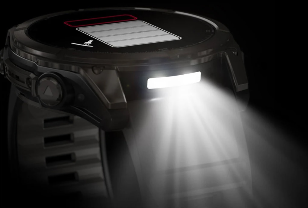For serious athletes and adventurers who want to push beyond their limits, this premium multisport GPS smartwatch is built to perform — with advanced strength training features, dive capability, an internal speaker and mic for voice features, a built-in LED flashlight and more.