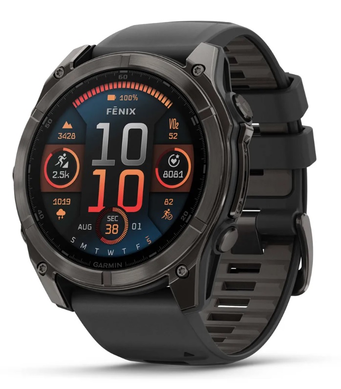 GARMIN Fenix 8 51 mm, AMOLED, Sapphire Carbon Gray DLC Titanium with Black/Pebble Gray Sil sports watch