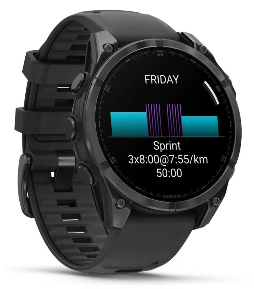 For serious athletes and adventurers who want to push beyond their limits, this premium multisport GPS smartwatch is built to perform — with advanced strength training features, dive capability, an internal speaker and mic for voice features, a built-in LED flashlight and more.
