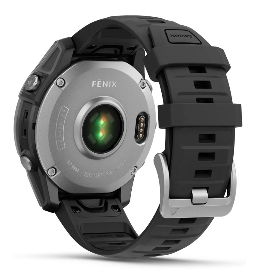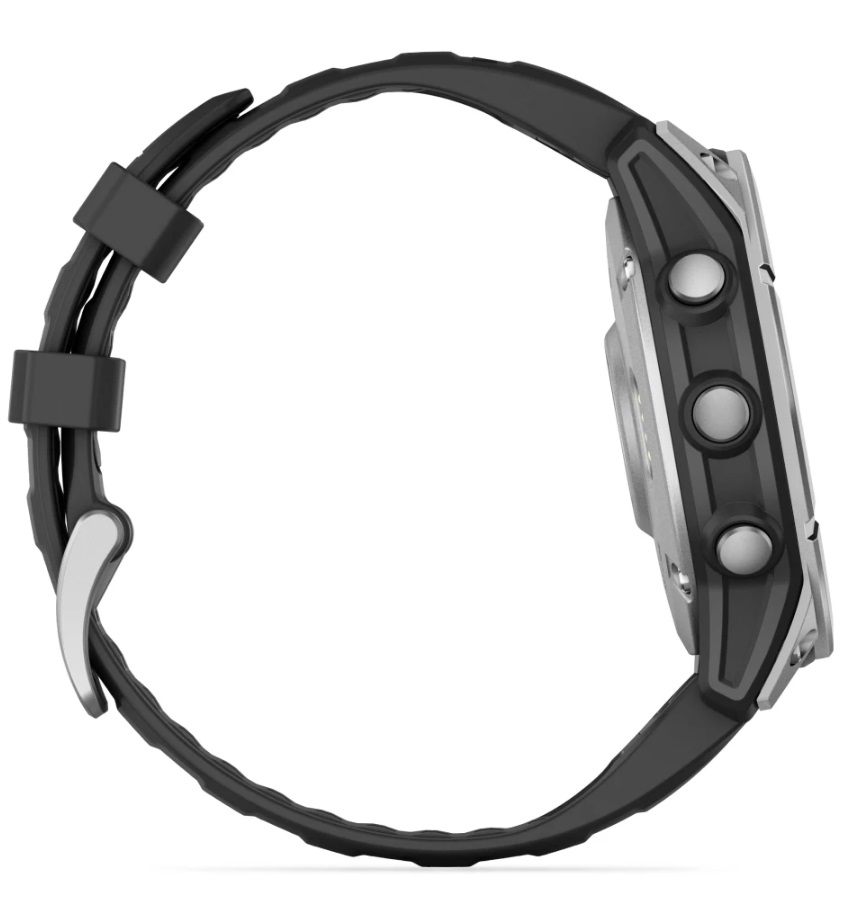 GARMIN Fenix E 47 mm, AMOLED, Stainless Steel with Black Silicone Band sports watch