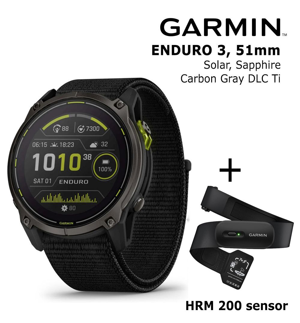 GARMIN Enduro 3 – 51 mm, Solar, Sapphire + HRM 200 Sensor sports watch