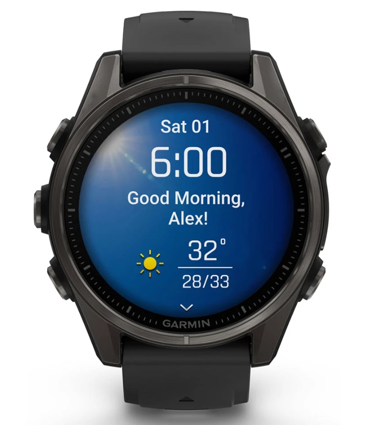 For serious athletes and adventurers who want to push beyond their limits, this premium multisport GPS smartwatch is built to perform — with advanced strength training features, dive capability, an internal speaker and mic for voice features, a built-in LED flashlight and more.