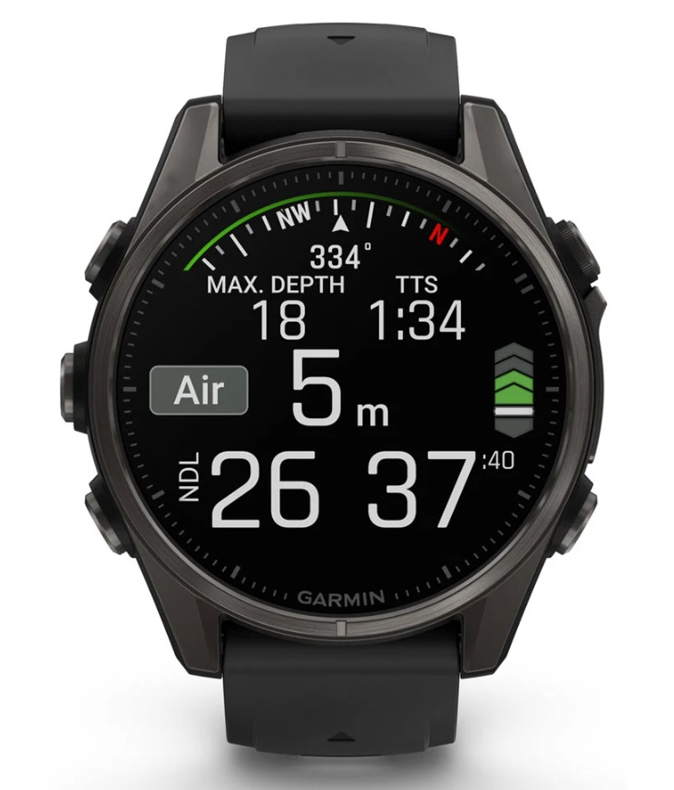 Built to endure, this premium design is dive-rated and features leakproof buttons, a metal sensor guard cover and bright 1.3” AMOLED display with options for a scratch-resistant lens and titanium bezel. It’s tested to U.S. military standards for thermal, shock and water resistance.
