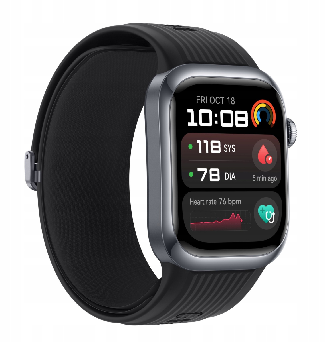 The watch's brand-new TruSense system is bolstered by a high-precision pressure sensor, mini pump, and inflatable airbag, to provide precise BP measurements that don't miss a beat.