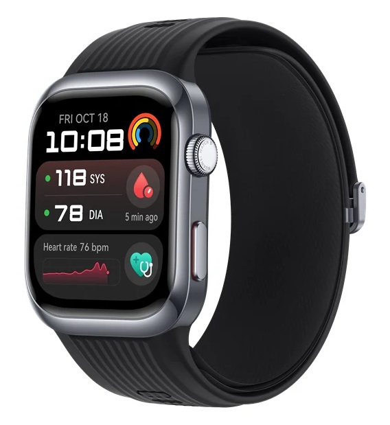 Sensors: 9-axis IMU sensor (Accelerometer sensor, Gyroscope sensor, Magnetometer sensor), Optical heart rate sensor, ECG sensor, Ambient light sensor, Barometer sensor, Temperature sensor, Differential pressure sensor, Hall sensor