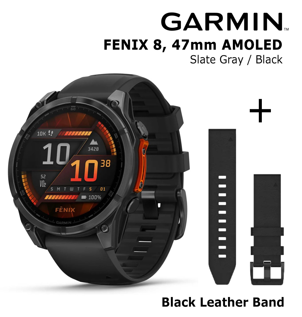 ✅ Sports watch Garmin Fenix 8 47 mm, AMOLED, Slate Gray with Black Silicone Band (code: 010-02904-00)