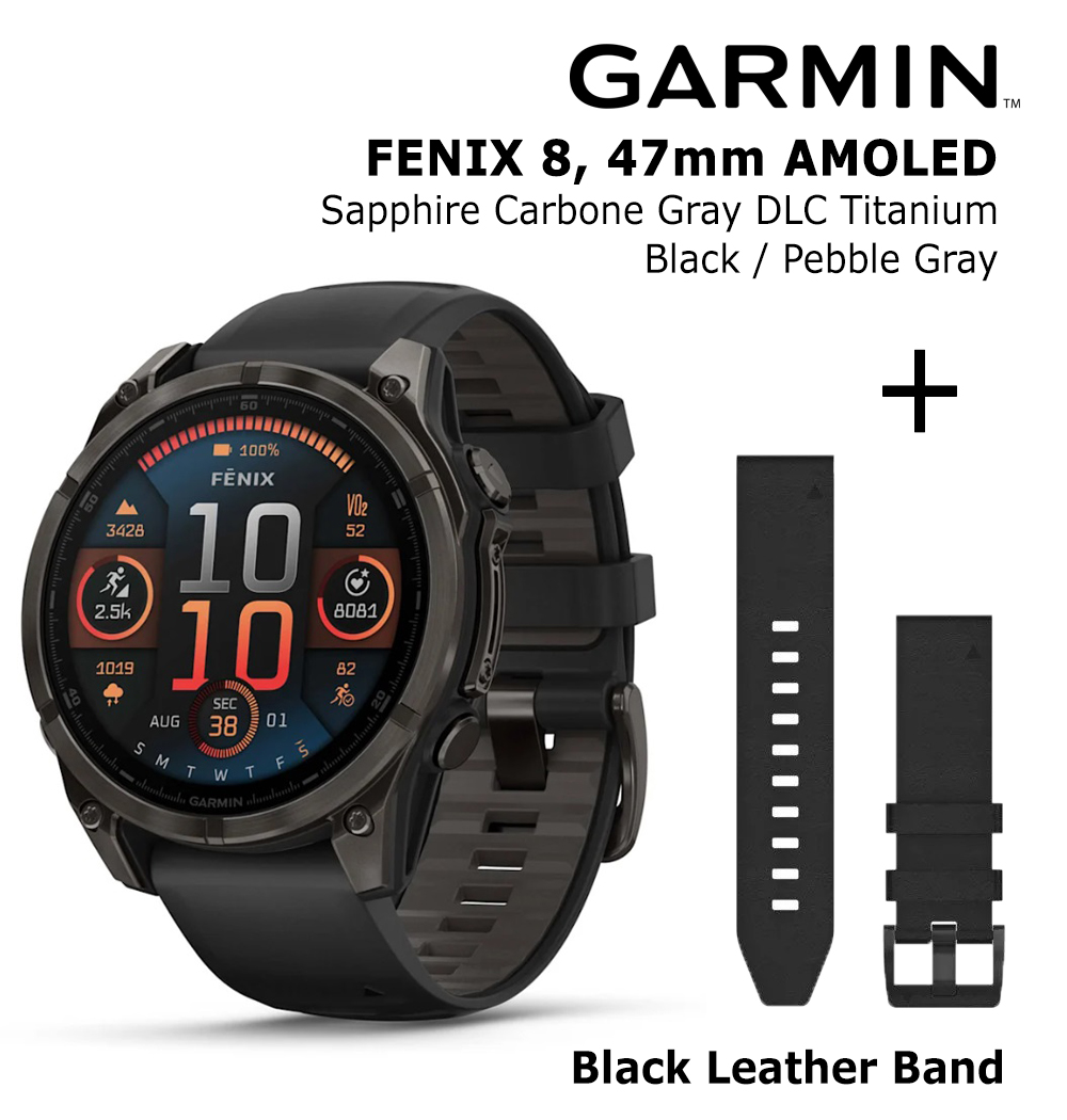 ✅ Sports watch Garmin Fenix 8 47 mm, AMOLED, Sapphire Carbon Gray DLC Titanium with Black/ Pebble Gray Silicone (code: 010-02904-21)