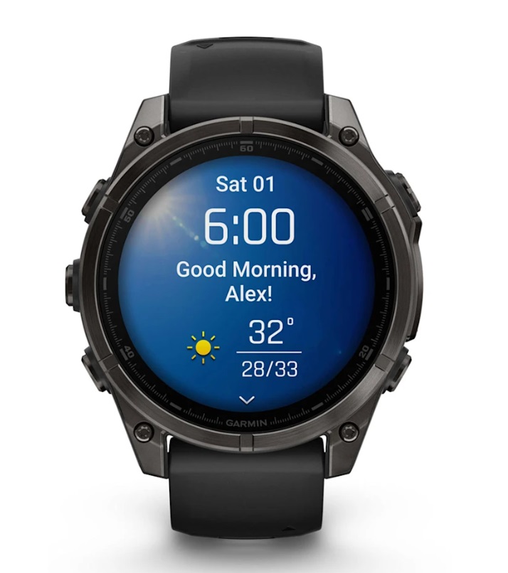 For serious athletes and adventurers who want to push beyond their limits, this premium multisport GPS smartwatch is built to perform — with advanced strength training features, dive capability, an internal speaker and mic for voice features, a built-in LED flashlight and more.
