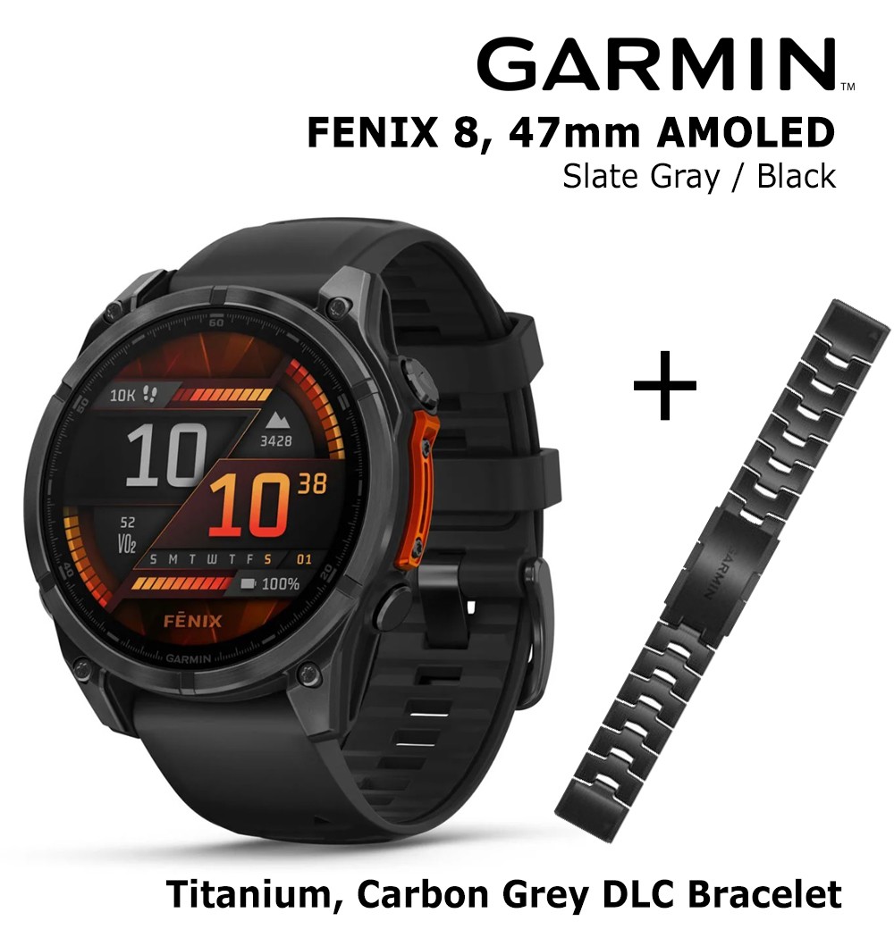 GARMIN Fenix 8 47 mm, AMOLED, Slate Gray + Titanium Bracelet Carbon Grey DLC, QuickFit 22mm sports watch