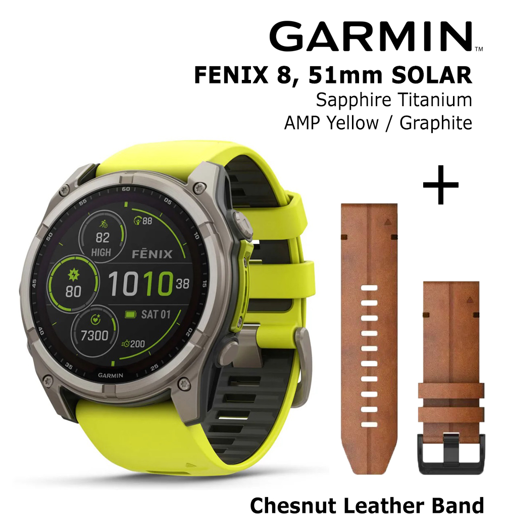 ✅ Sports watch Garmin Fenix 8 51 mm, Solar, Sapphire Titanium with Amp Yellow/ Graphite Silicone Band (code: 010-02907-21)