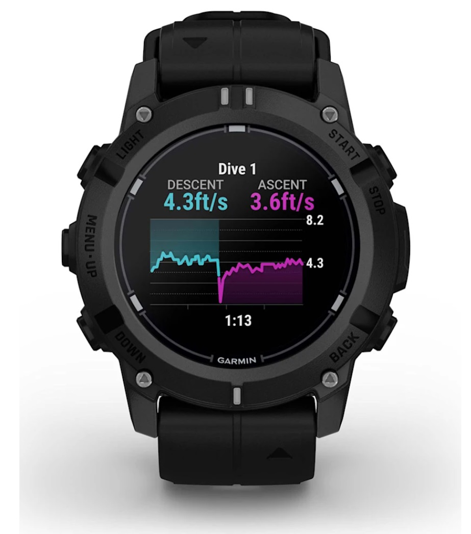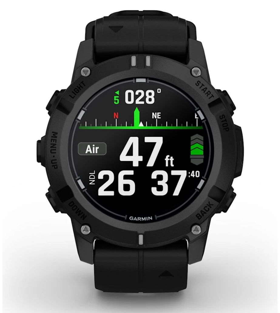 Syncs dive log with Garmin Dive™ mobile app