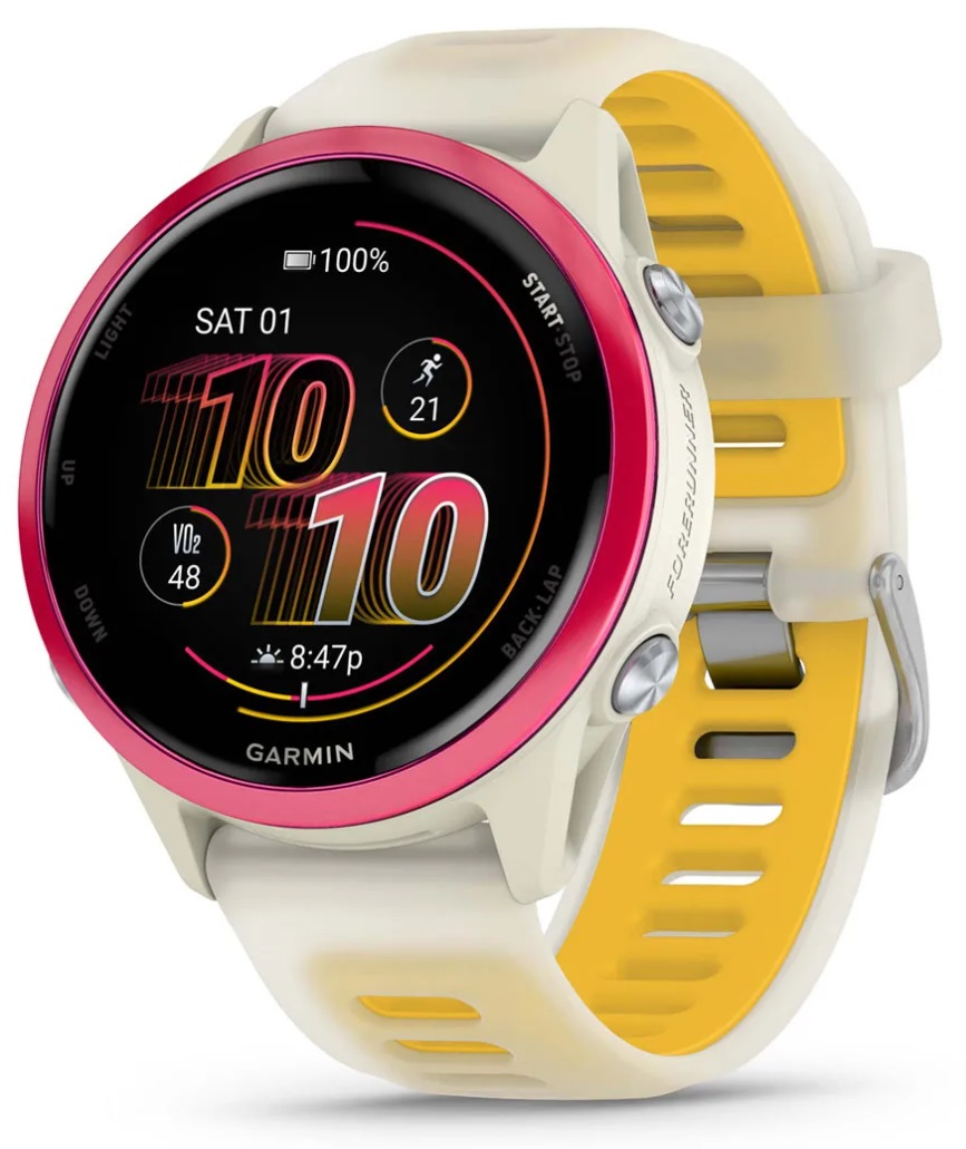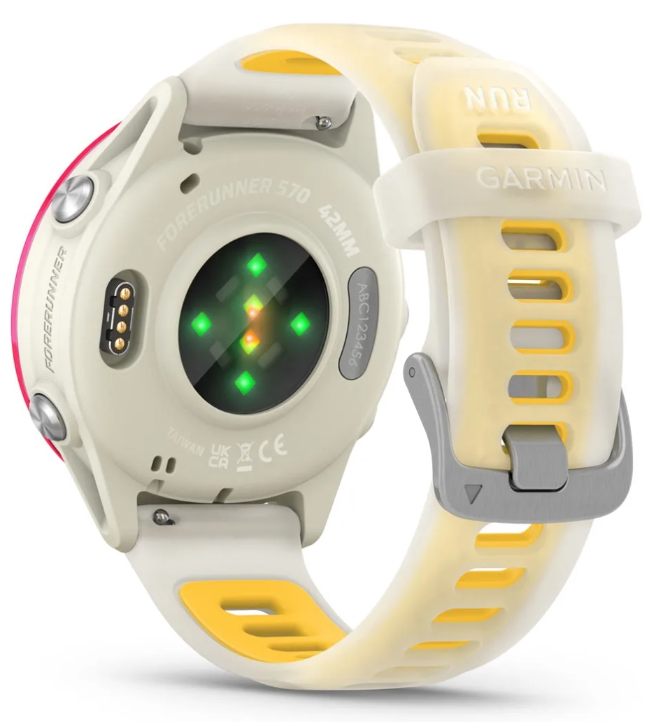 GARMIN Forerunner 570 - 42mm, Raspberry Aluminium with Translucent Bone/Mango Band sports watch