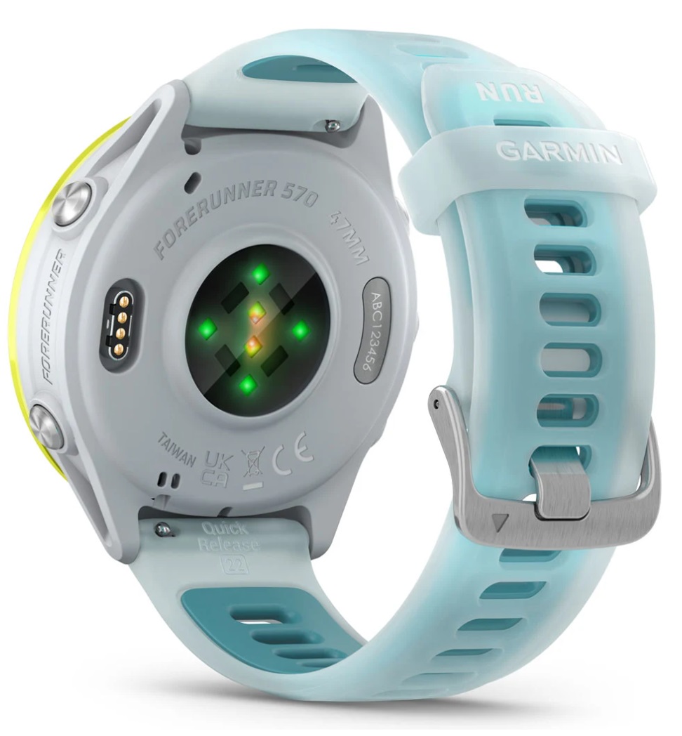 GARMIN Forerunner 570 - 47mm, Amp Yellow Aluminium with Translucent Whitestone/Turquoise Band sports watch