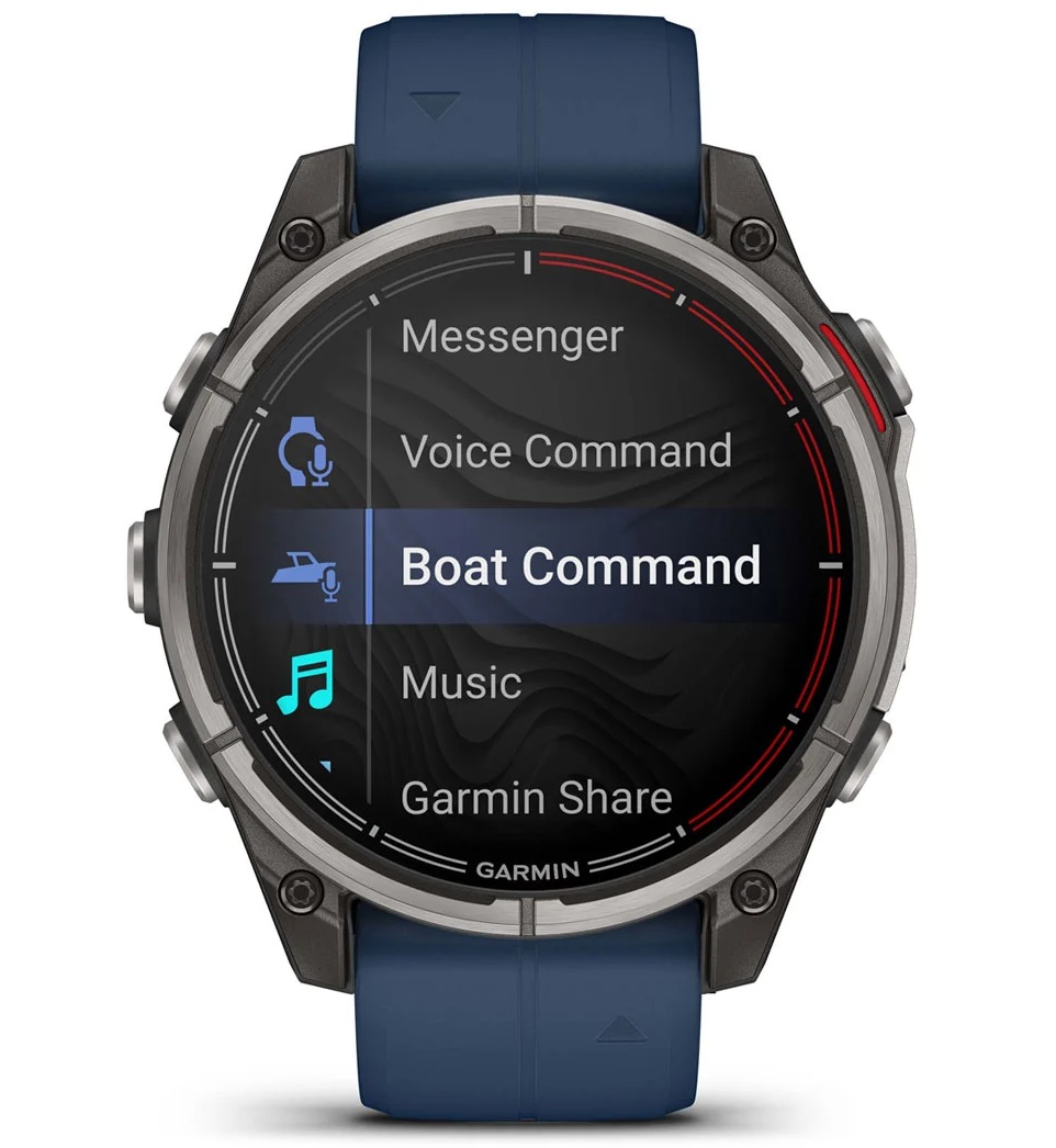 Use your quatix 8’s built-in speaker and microphone to control a compatible chartplotter with voice commands via BLUETOOTH® technology. Enjoy remote control capabilities with select compatible Garmin chartplotters, autopilots, Force® trolling motors, Fusion® stereos, and more.