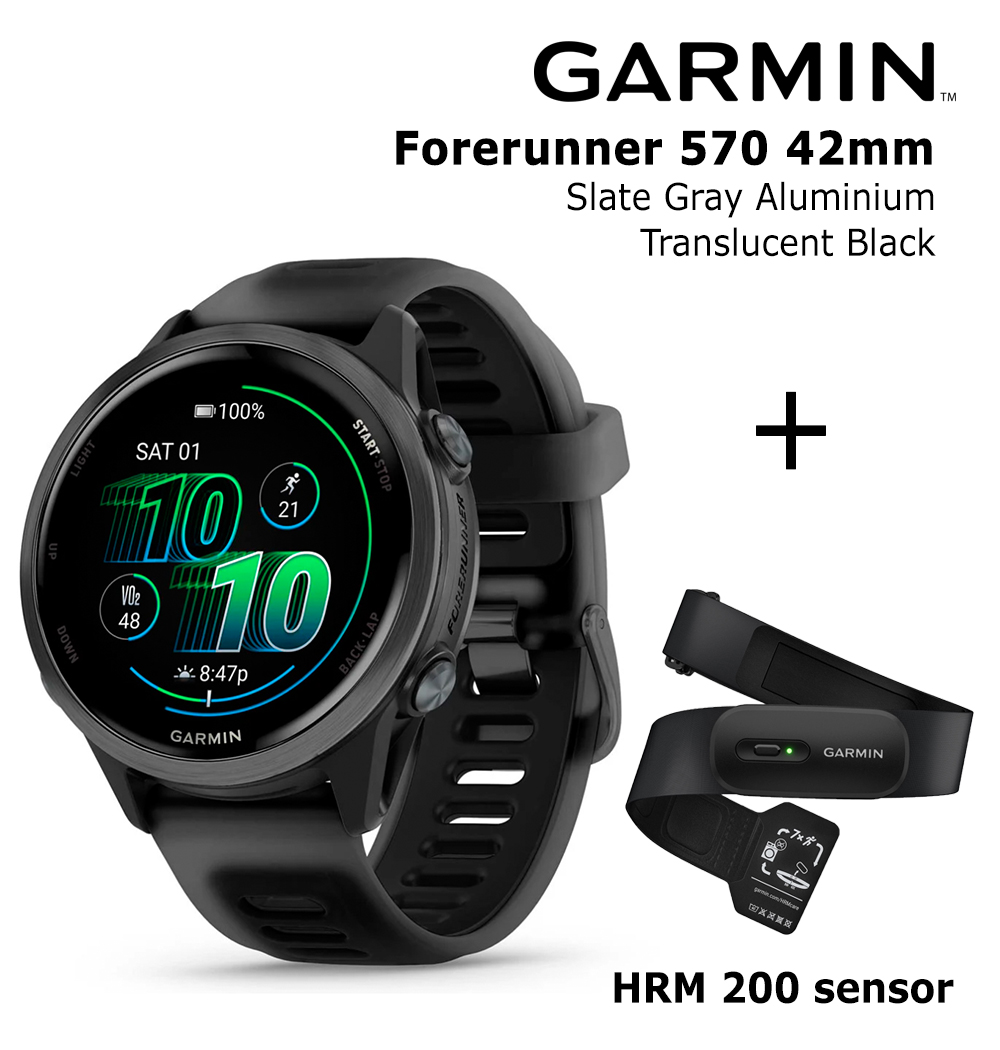 ✅ Sports watch Garmin Forerunner 570 - 42mm, Slate Gray Aluminium with Translucent Black/ Black Band (code: 010-02970-00)
