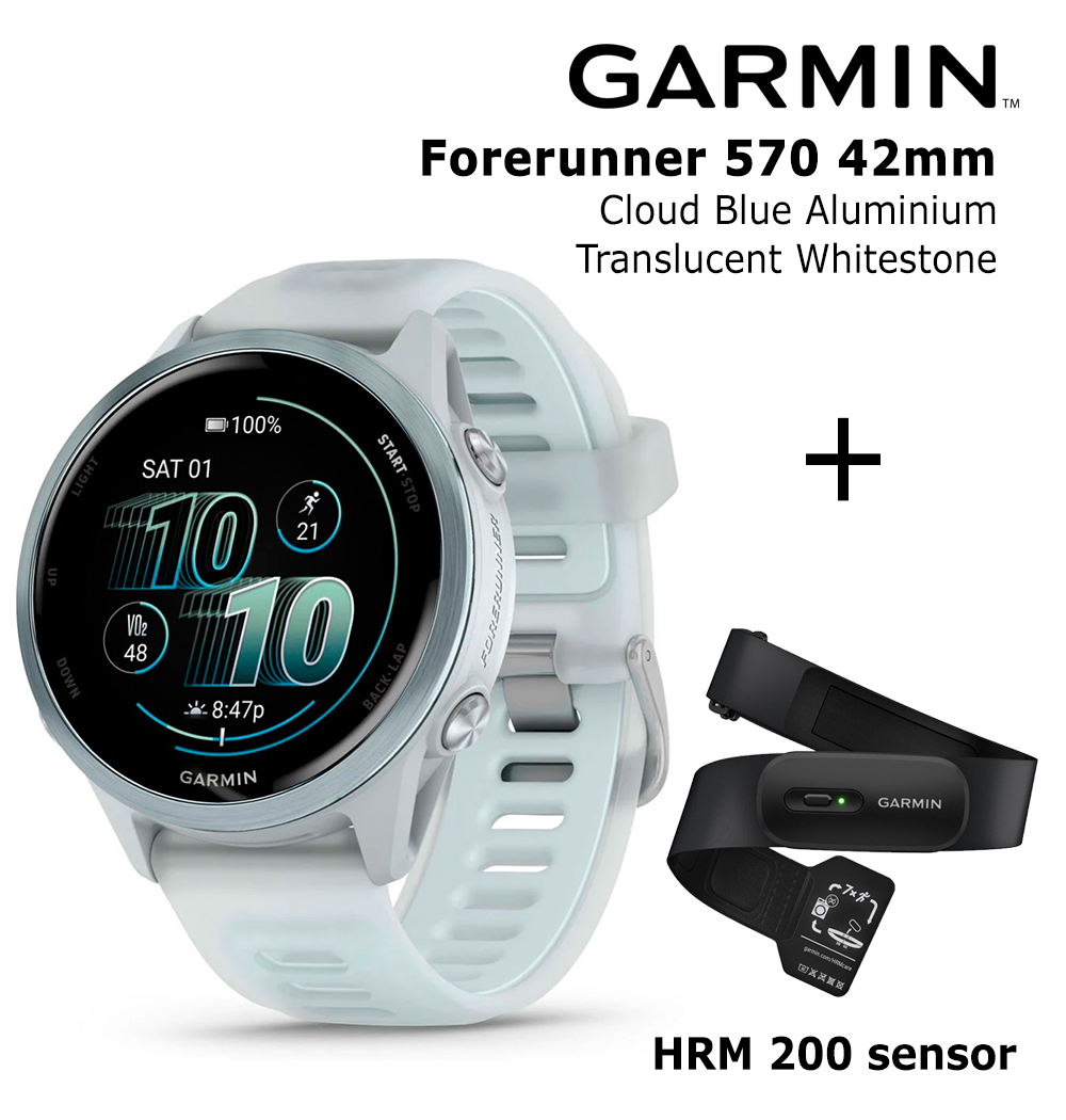 ✅ Sports watch Garmin Forerunner 570 - 42mm, Cloud Blue Aluminium with Translucent Whitestone/ Cloud Blue (code: 010-02970-01)