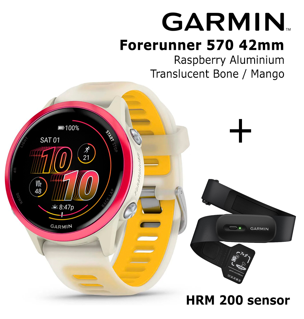✅ Sports watch Garmin Forerunner 570 - 42mm, Raspberry Aluminium with Translucent Bone/ Mango Band (code: 010-02970-02)