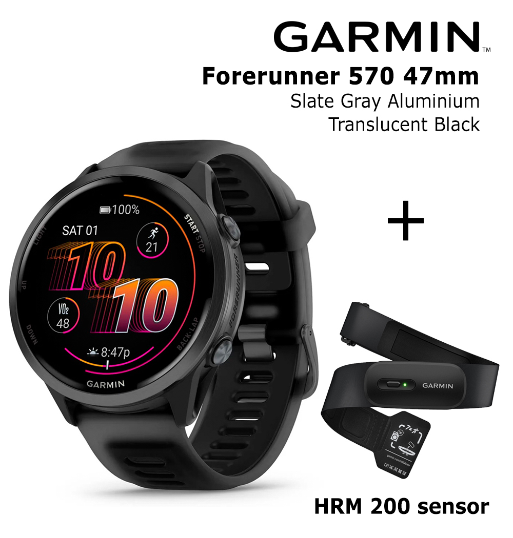 ✅ Sports watch Garmin Forerunner 570 - 47mm, Slate Gray Aluminium with Translucent Black/ Black Band (code: 010-02971-00)