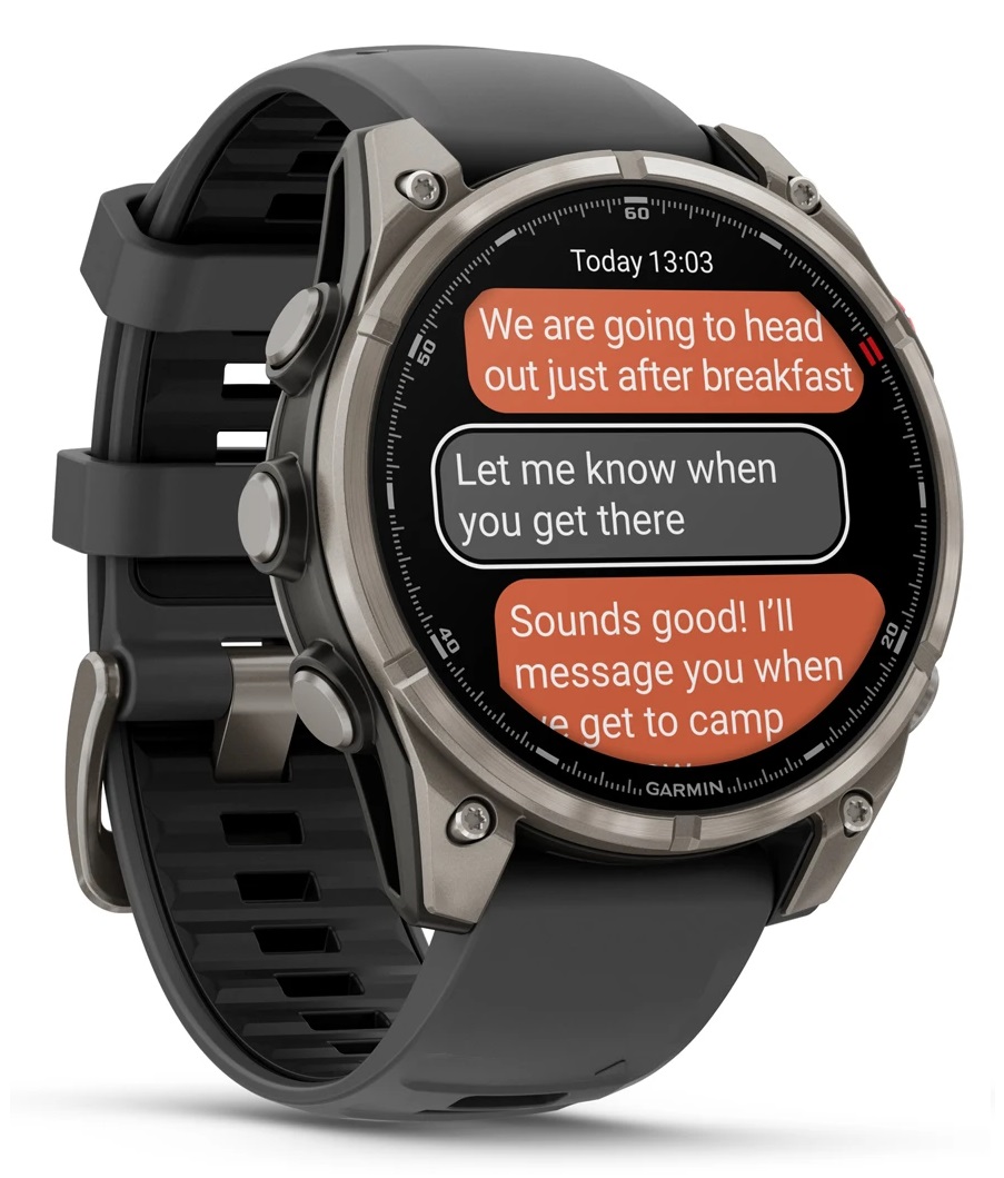 You can share text messages with other Garmin Messenger users right from your watch using a satellite or LTE connection. The app will automatically sync your contacts when your watch is paired with your smartphone.