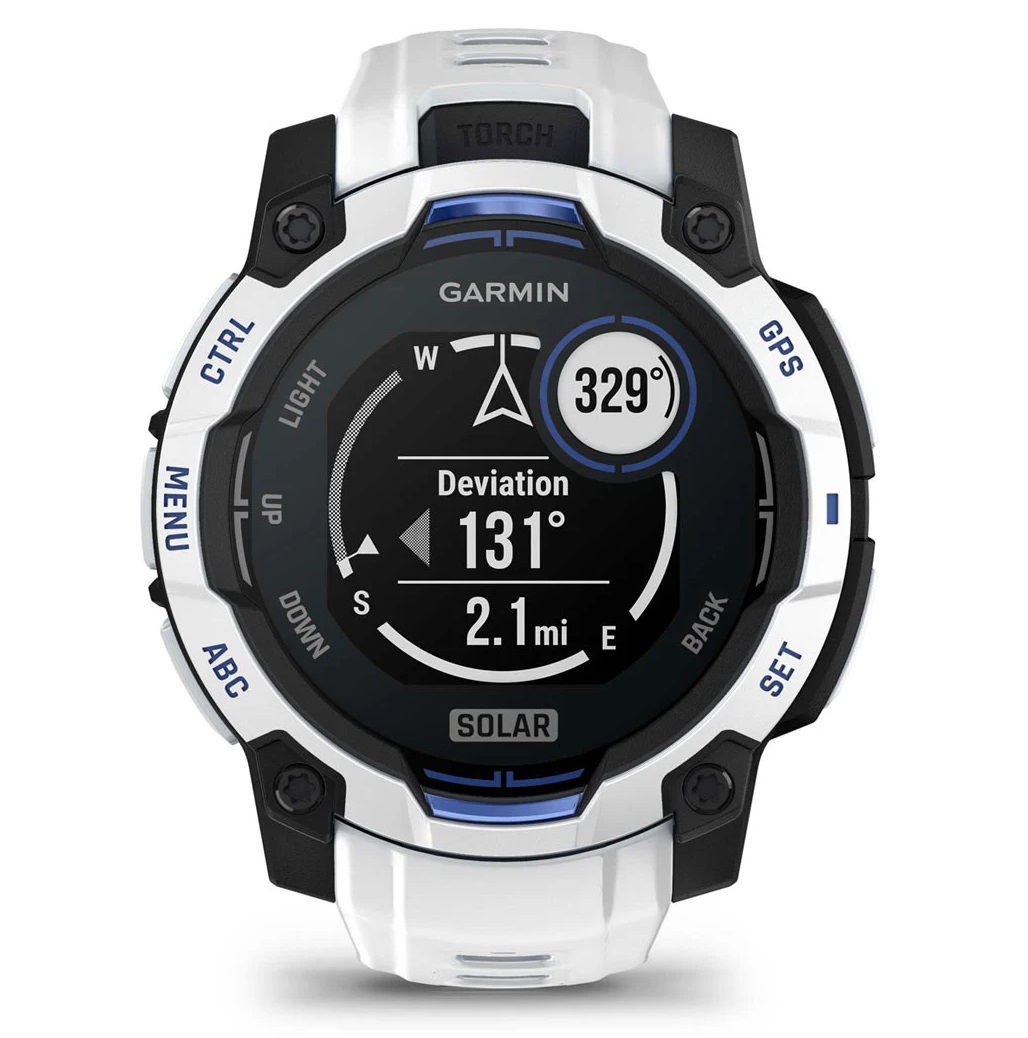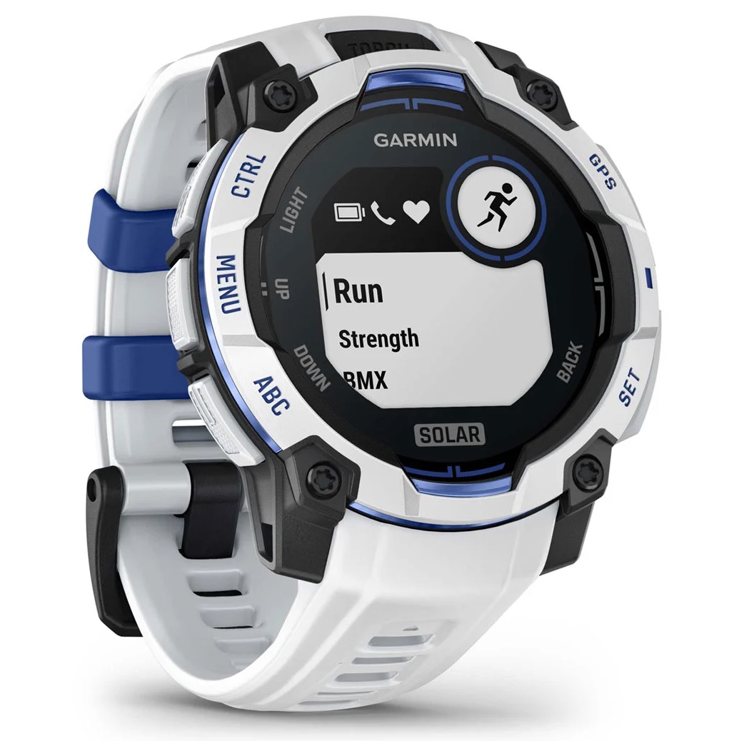 GARMIN Instinct 3 – 45 mm, Supernova Edition, Solar, Whitestone / Bolt blue sports watch