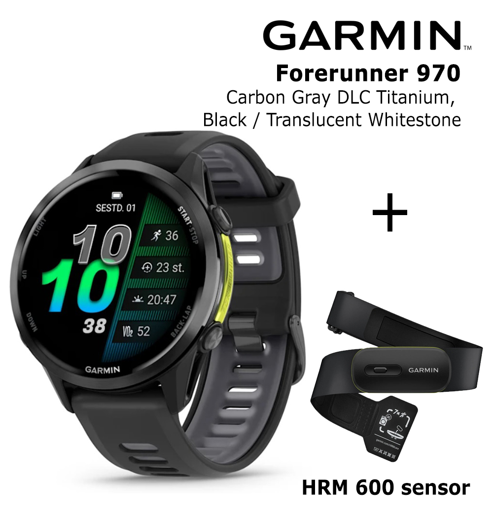GARMIN Forerunner 970, Carbon Gray DLC Titanium, Black/Translucent Whitestone + HRM 600 sports watch
